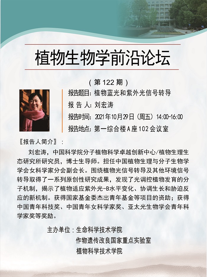 活动时间 报告题目 植物蓝光和紫外光信号转导