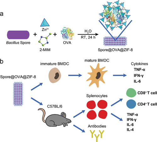 Biomimetic assembly of spore@ZIF-8 microspheres for vaccination