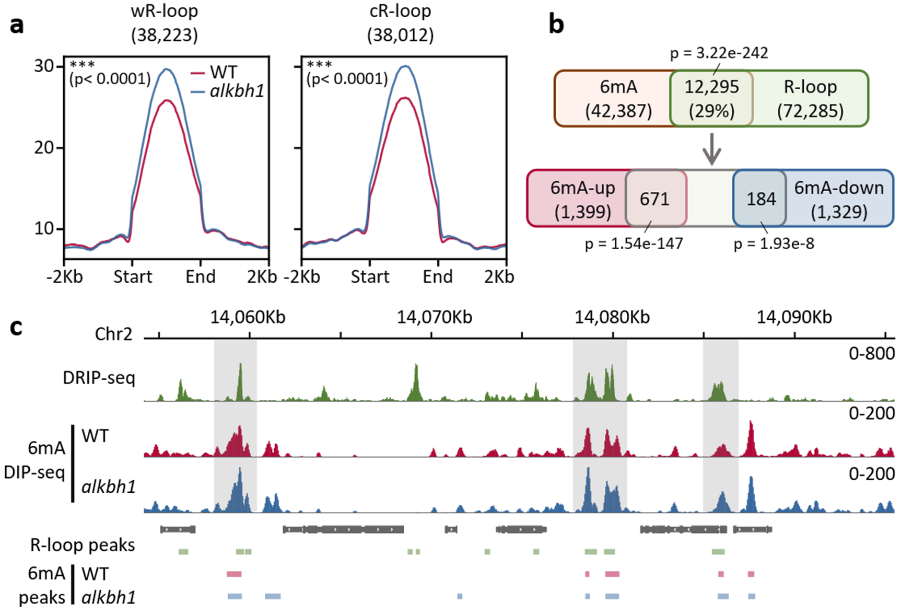 Abstract:The Fe (II)- and α-ketoglutarate‑dependent AlkB family dioxygenases are implicated in nucleotide demethylation. AlkB homolog1 (ALKBH1) is shown to demethylate DNA adenine methylation (6mA) preferentially from single-stranded or unpaired DNA, while its demethylase activity and function in the chromatin context are unclear. Here, we find that loss-of-function of the rice ALKBH1 gene leads to increased 6mA in the R-loop regions of the genome but has a limited effect on the overall 6mA level. However, in the context of mixed tissues, rather than on individual loci, the ALKBH1 mutation or overexpression mainly affects the expression of genes with a specific combination of chromatin modifications in the body region marked with H3K4me3 and H3K27me3 but depleted of DNA CG methylation. In the similar context of mixed tissues, further analysis reveals that the ALKBH1 protein preferentially binds to genes marked by the chromatin signature and has a function to maintain a high H3K4me3/H3K27me3 ratio by impairing the binding of Polycomb repressive complex 2 (PRC2) to the targets, which is required for both the basal and stress-induced expression of the genes. Our findings unravel a function of ALKBH1 to control the balance between the antagonistic histone methylations for gene activity and provide insight into the regulatory mechanism of PRC2-mediated H3K27me3 deposition within the gene body region.