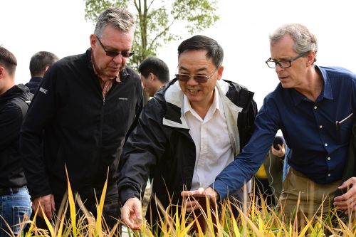 Professor Peng Shaobing Introduces Ratoon Rice Technology to Academician Rod Wing and Mark Tester